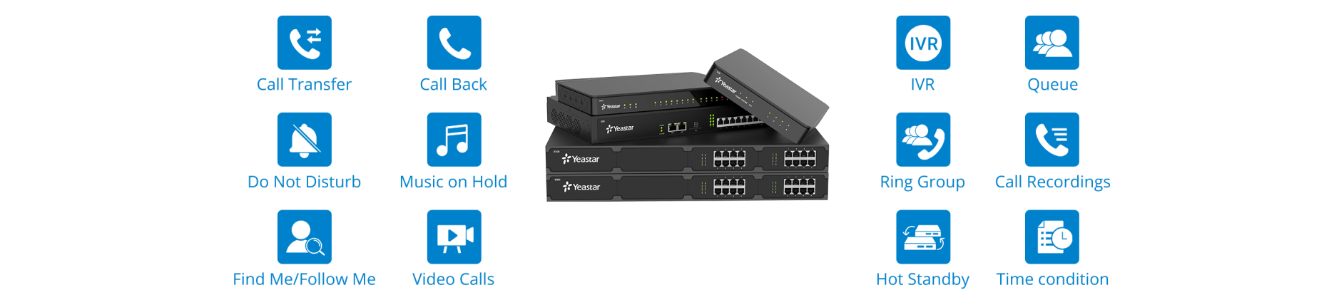 VoIP PBX YEASTAR S100 Mendukung hingga 200 pengguna, Yeastar S100 adalah VoIP PBX berbasis modul terukur yang dibuat untuk memberdayakan dan menyederhanakan cara Anda berbisnis. Dilengkapi dengan prosesor quad-core, Unified Communications yang kuat, dan interoperabilitas yang sangat baik dengan kemudahan penggunaan.